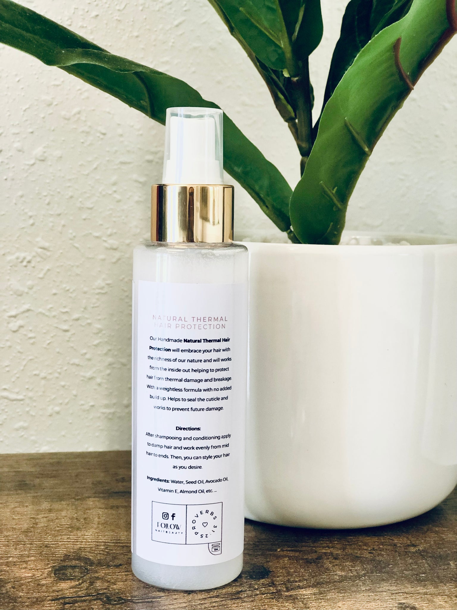 Our Handmade Natural Thermal Hair Protection will embrace your hair with the richness of our nature and will works form the inside out helping to protect the hair from the thermal damage and breaking and breakage. With a weightless formula with no added buildup. Helps to deal the cuticle and works to prevent future damage.